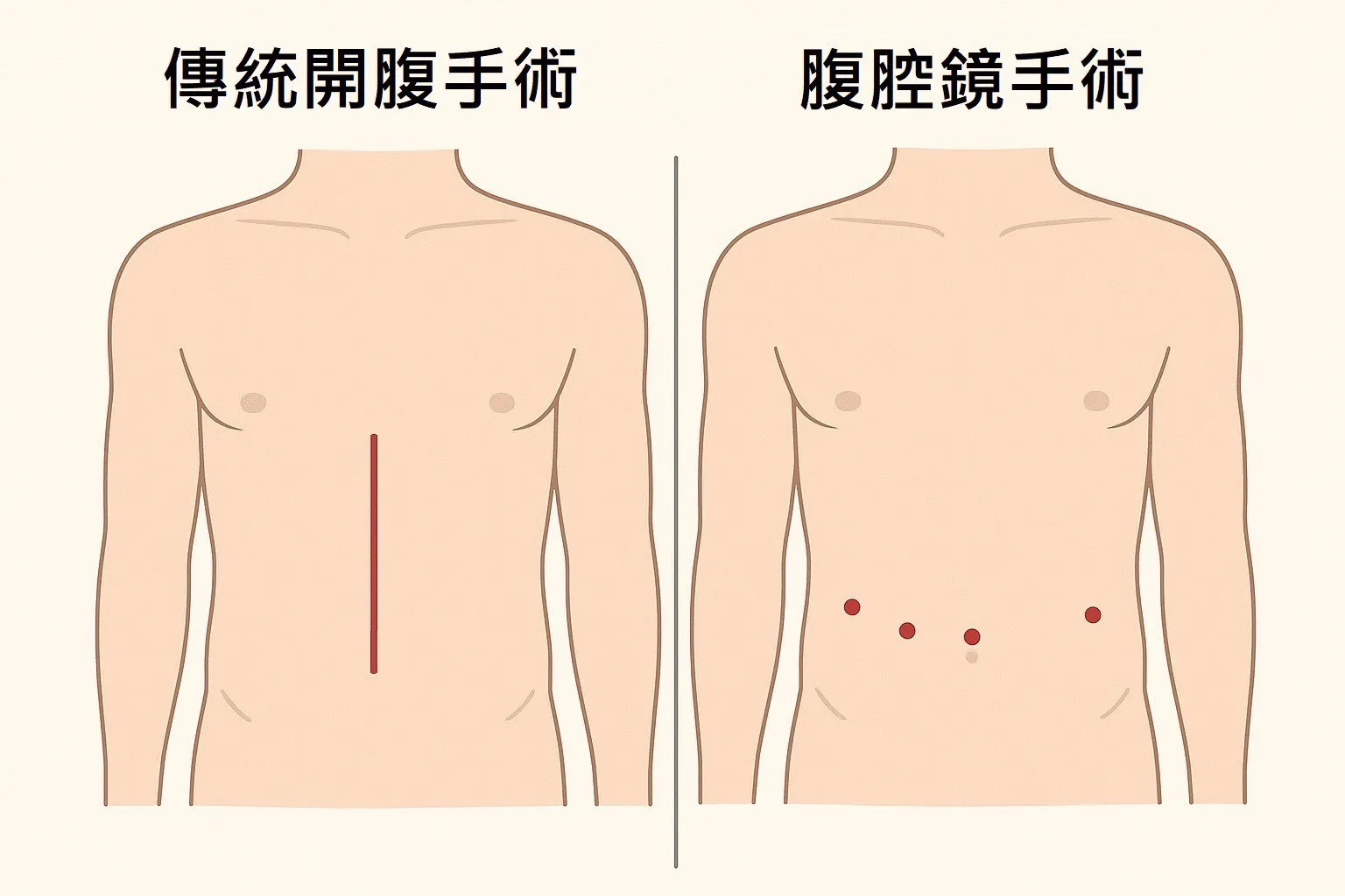 傳統開腹手術與腹腔鏡手術比較: