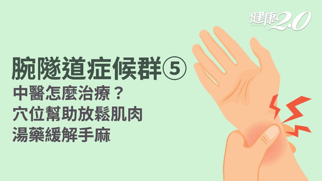 在中醫的理論中,出現腕隧道症候群代表肌肉緊繃,屬於氣血不通、閉阻,因而出現痛、麻等症狀,治療目標要活血化瘀、舒筋活絡,讓氣血暢通、筋絡放鬆。