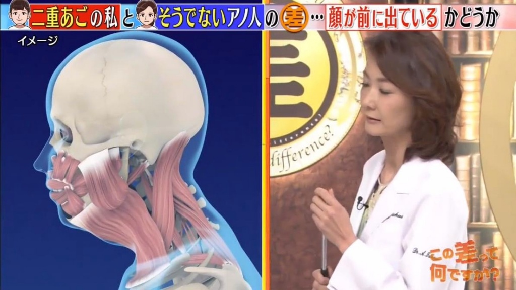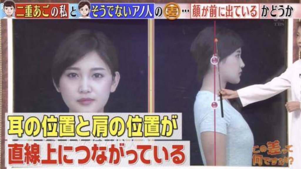 不少人明明很瘦,但是也有雙下巴,日本電視節目本電視節目《この差って何ですか?(這有什麼差別?)》請來日本瘦身專家為大家解構雙下巴的形成原因,他表示,除了肥胖,錯誤的姿勢也是引起雙下巴的主因。