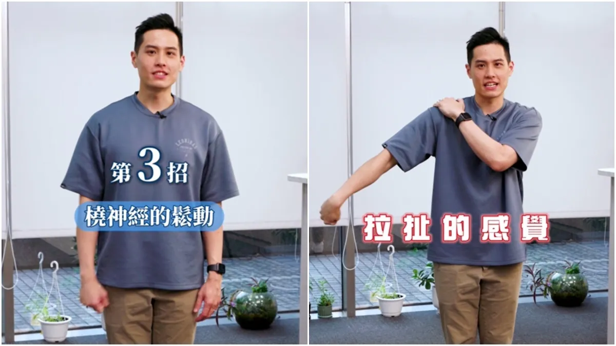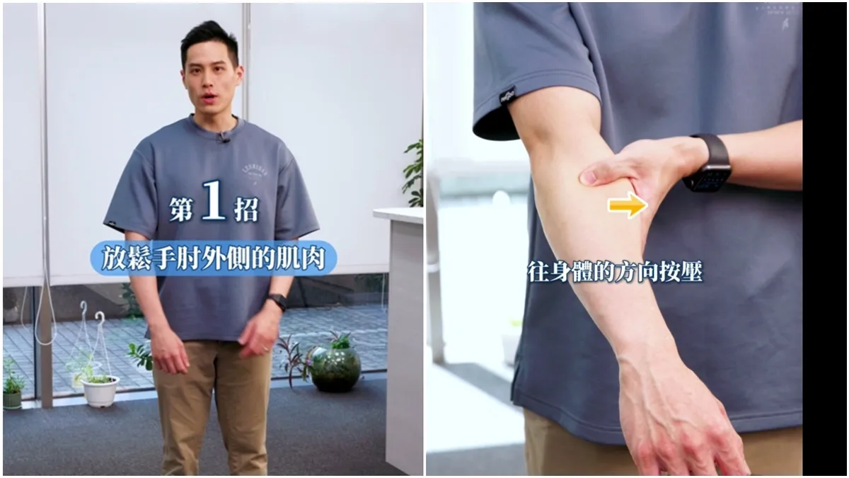 陳季揚指出,網球肘不僅會帶來不適,嚴重時甚至可能影響日常生活,例如開不了瓶蓋、拿不動水壺,甚至是刷牙都感到困難。他介紹3個動作,分別針對放鬆肌肉、矯正關節和神經鬆動,幫助恢復手肘的活動力。