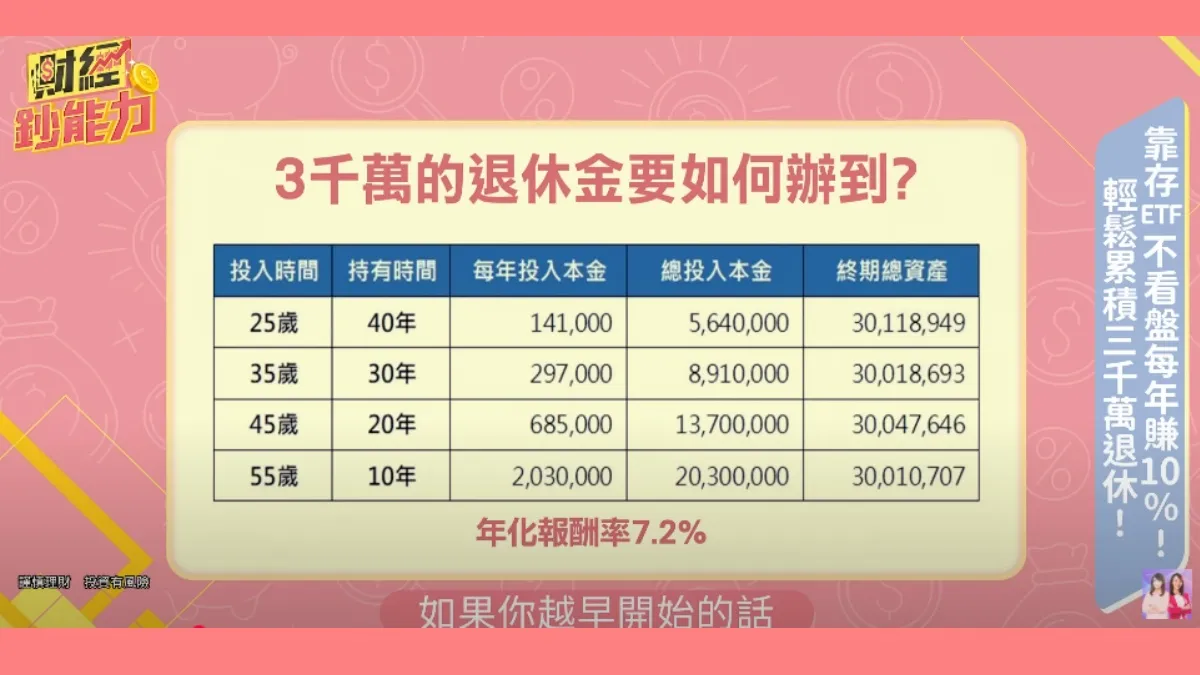 月存1萬「這樣買」ETF!65歲前坐擁3000萬 提早退休不是夢