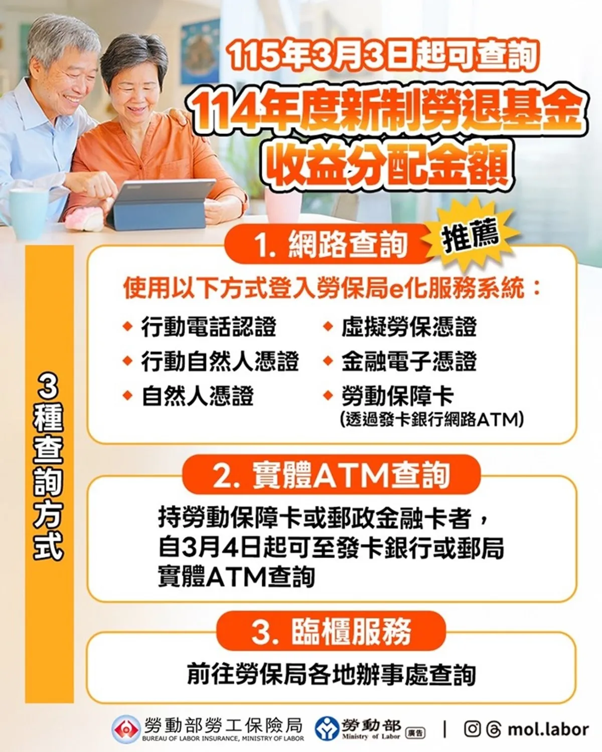 勞工朋友今3/3起可透過多種方式查詢,包括: