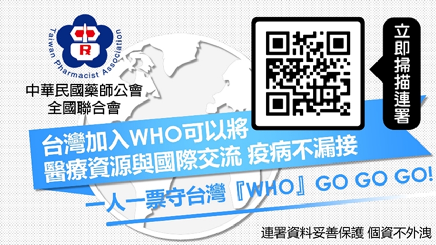 號召500萬人挺「台灣加入WHO」!全國藥師邀你一起連署