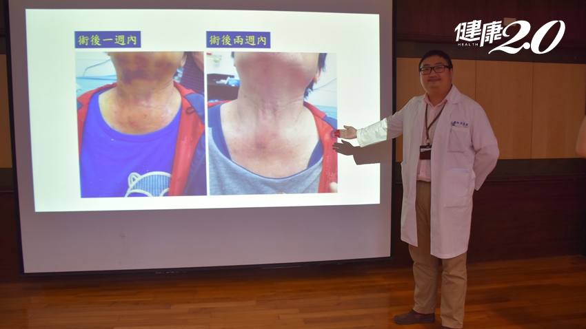 外科醫師洪健齡表示,一般來說甲狀腺癌初期是沒有任何症狀的,有些患者是因為健檢時接受頸部超音波檢查發現,也有些人在脖子上摸到腫塊,甚至有患者到了比較嚴重的情形,例如發現聲音沙啞才求診。