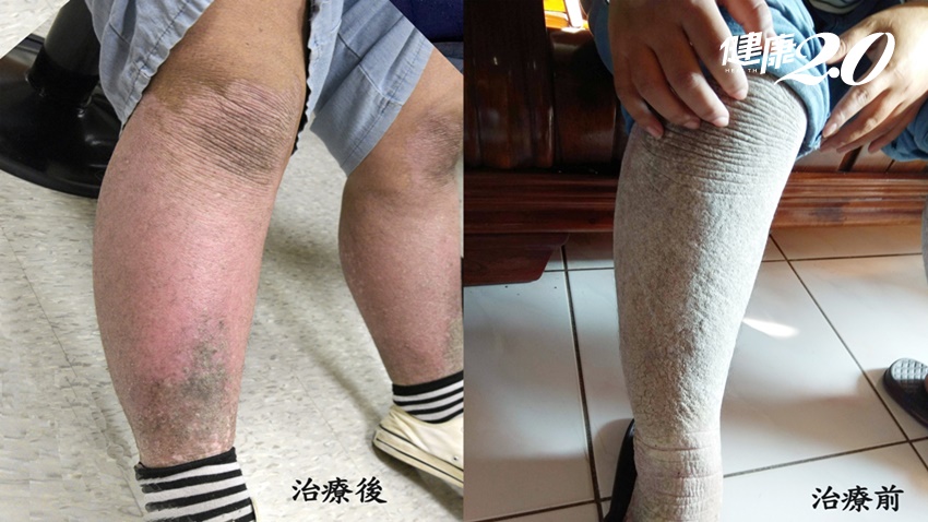 去年9月起許小姐展開生物製劑治療,她身體、手、胸前、背上的灰白色鱗狀皮層逐漸消退。但後來許小姐吃了一口家人說用中藥材燉煮、可以補身體的素食豆腐,雖然她吃一口就覺得不對而吐掉,但之後她皮膚狀況竟然回到治療前。黃光永不放棄,再替她申請第2種生物製劑,所幸成效很好,只剩雙腳有紅色斑塊。也幫她會診新陳代謝科、婦科、身心科,幫助她走出多年封閉的身心問題。
