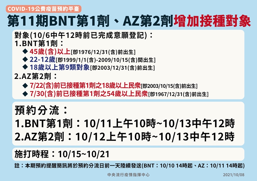 看更多:連5天本土+0!第11輪疫苗即日登記 5對象10/15起開打AZ、BNT疫苗