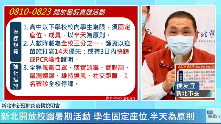 新北市學校可以暑期活動了!侯友宜宣布 8/10起高中以下開放暑期活動