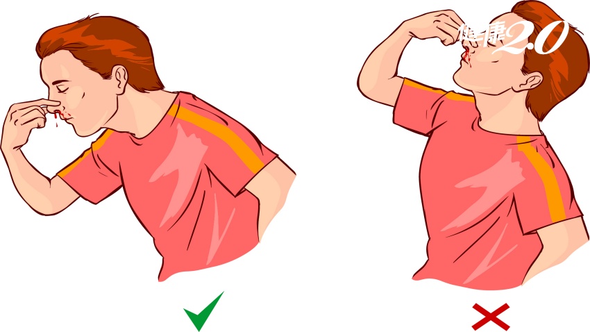 許庭瑋說,撞傷、腫瘤、空氣乾燥,或是用力擤鼻涕都可能造成鼻黏膜出血。他提醒,流鼻血時不可以自行塞入衛生紙、棉花,以免取出時又造成新傷口,加重出血。正確的做法是低頭朝下,在出血的鼻孔側,由鼻翼向鼻中膈部位緊壓不放10-20分鐘來止血,一般即可完全止血。