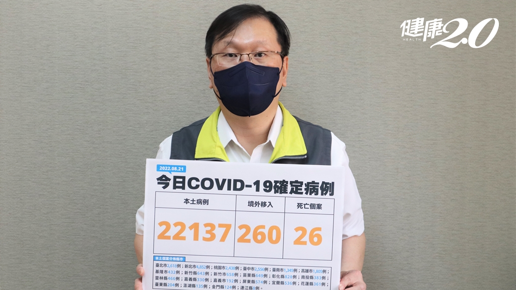 指揮中心表示,今日新增17,080例本土病例,為7,838例男性、9,226例女性、16例調查中,年齡介於未滿5歲至90多歲以上,個案分布為新北市(3,254例)、台中市(2,175例)、高雄市(1,993例)、桃園市(1,801例)、台北市(1,749例)、台南市(1,369例)、彰化縣(877例)、新竹縣(587例)、新竹市(503例)、苗栗縣(444例)、屏東縣(422例)、雲林縣(388例)、嘉義縣(256例)、宜蘭縣(249例)、南投縣(242例)、嘉義市(167例)、基隆市(166例)、花蓮縣(166例)、台東縣(121例)、金門縣(98例)、澎湖縣(52例)、連江縣(1例)。