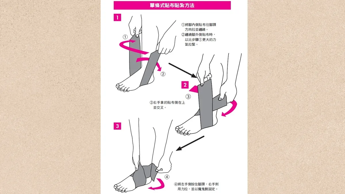 穿戴時感到疼痛應暫停使用 單條貼紮預防腳踝內翻扭傷