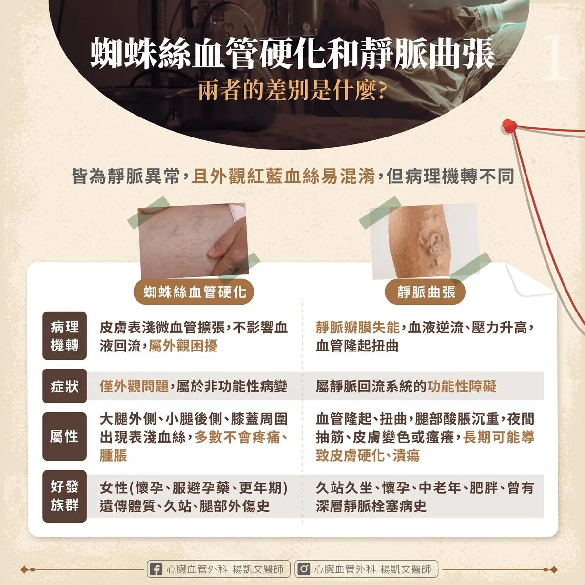 楊凱文醫師指出,這兩種靜脈問題的好發族群也有明顯區別,快來看看你屬於哪一種: