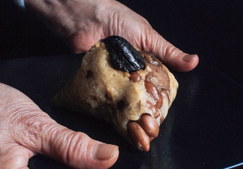 這款粽子誠意十足地包進了果仁大又飽滿的黃金板栗,一等一的香甜美味,讓人品嚐後回味無窮。雷師傅說,黃金栗子和雪蓮子有堅果的營養,且富含抗性澱粉,是健康、好吃又不易發胖的食材;餡料中還有肉質厚實、香氣濃郁的黑早冬菇,以及口感綿密清香的雲林花生…,紥紥實實的在地好料全被包進粽子裡,每一顆都嚐得到讓人懷念的媽媽味。
