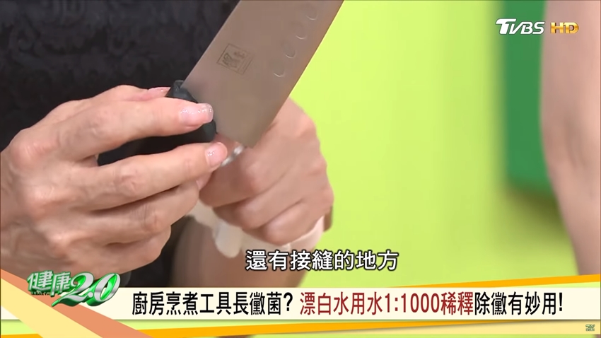 至於菜刀則要注意刀柄和刀刃的接縫處,是否有發霉情形;平時清洗時須注意刷洗乾淨,而且洗完之後要靜置乾燥,再收進刀架內。譚敦慈也提到,如果已經發霉,也可以用稀釋過的漂白水浸泡。