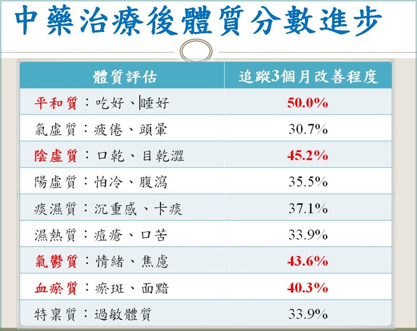 這項計畫從今年四月開辦以來,已有149名病患嘗試在吃抗排斥藥外,也接受中醫調理,其中119人持續追蹤治療中,回診率達80%。