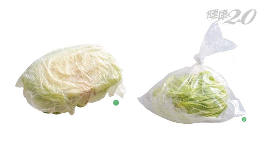 用沾濕的廚房紙巾,將高麗菜切口處完全包覆住,高麗菜放進塑膠袋後,將高麗菜的切口處,朝下擺放保存。放於冰箱蔬果室保存場所,可以保存10天。