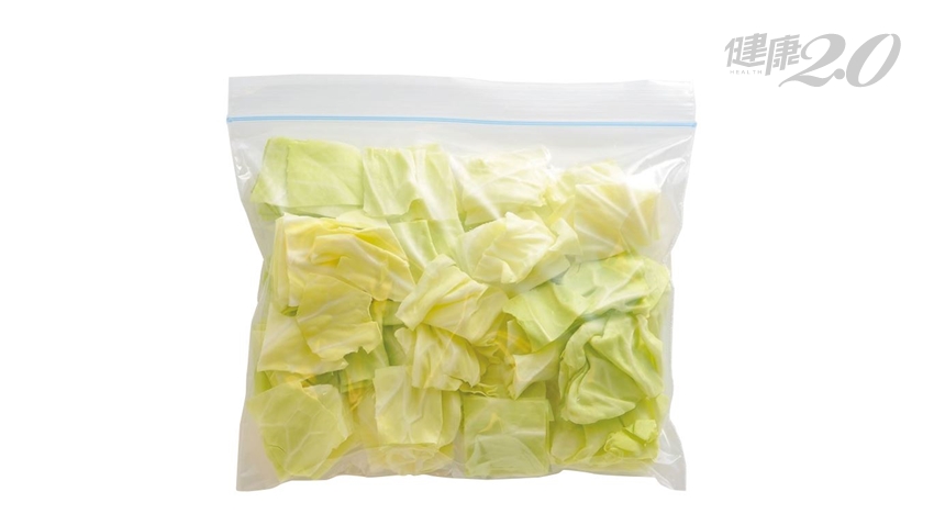 高麗菜切除菜心,並切成大塊後,在生鮮的狀態下直接冷凍,將高麗菜放在冷凍專用保存袋內,再放於冰箱冷凍場所,可以保存1個月。