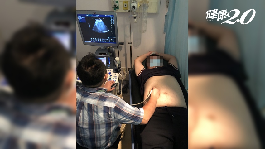▲曾晟恩醫師為蔡先生以超音波檢查肝臟。