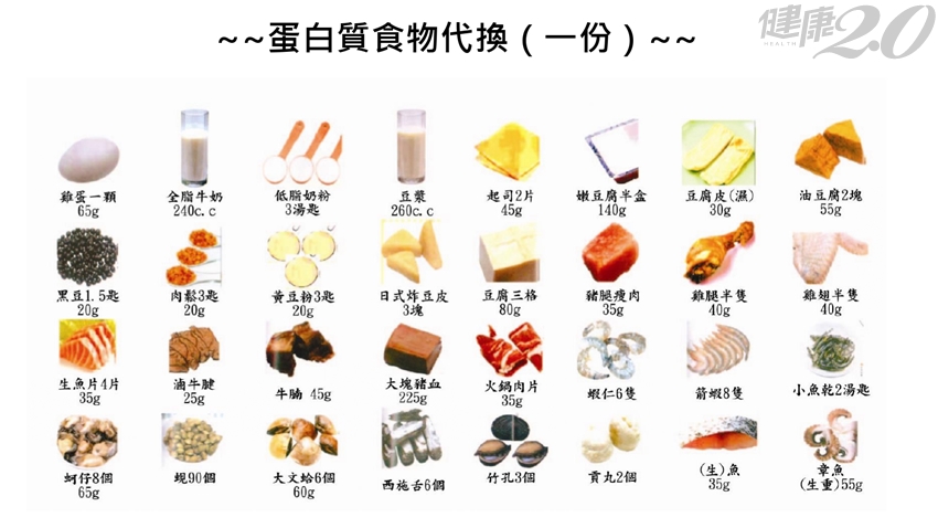 但醫師也指出,蛋白質的攝取量在不同條件下有不同限制,例如手術後、敗血症、創傷或燒燙傷等急性病人,就可透過提高蛋白質的攝取,降低死亡率,建議攝取量甚至可以到1.2~2.0 g/kg/day。