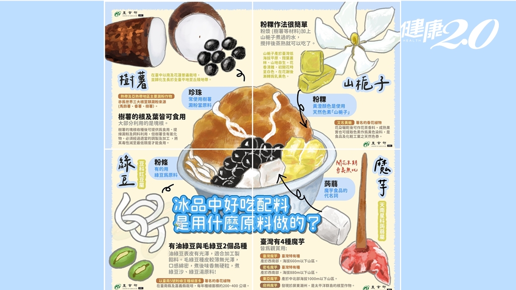 地表最熱的夏天,能來一碗配料滿滿的剉冰,無疑是個小確幸!你知道剉冰裡常見的蒟蒻、珍珠、粉粿、粉條是怎麼來的嗎?農業部揭開它們的原型,令人意外的,粉條的原料竟然是綠豆,而很多人不認識蒟蒻的本尊「魔芋」。