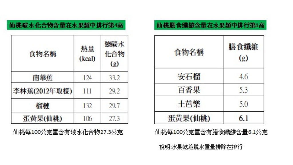 ▲仙桃的碳水化合物含量為水果中第4高,膳食纖維含量為水果中第一。(圖/林旻樺營養師提供)