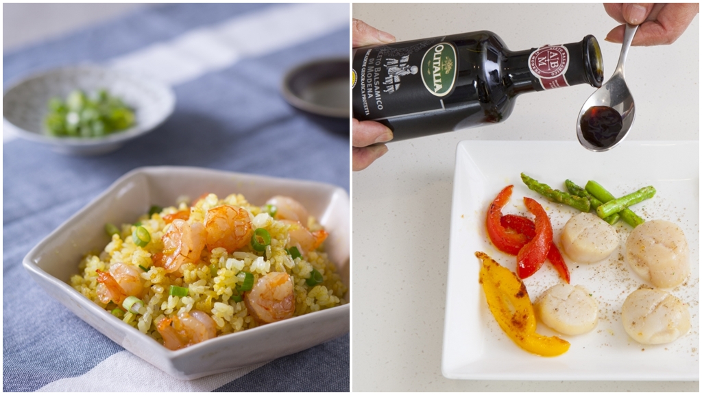 烹調叮嚀:蘆筍必須先燙過,直接煎則不容易熟。新鮮干貝可以生吃,稍微煎金黃就可以了,煎太久則質地會變硬。義大利陳年葡萄醋是以熬煮過的葡萄濃縮果漿,放在橡木桶內釀造出來的,適合用於製作沙拉或海鮮、肉類料理的調味。