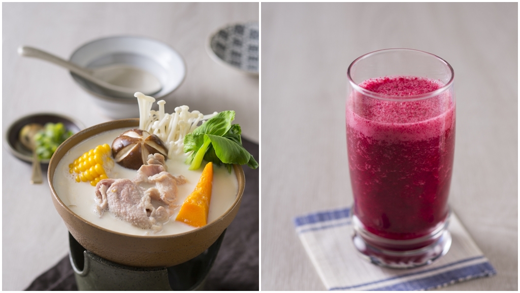 烹調叮嚀:青江菜可以換成其他綠色蔬菜;豬肉片能以牛肉片替換。煮豆漿時容易溢出或是黏鍋底,所以必須用小火慢慢煮。水可以低脂雞骨高湯或豬骨高湯取代,讓豆漿火鍋變得更有營養。