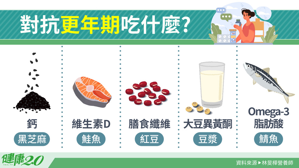 更年期女性因雌激素下降,易罹患心血管疾病與骨質疏鬆症,飲食介入在預防和治療中占重要角色。更年期女性的營養需求特殊,要特別注意熱量控制、鈣與維生素D的補充、大豆異黃酮與膳食纖維的攝取。