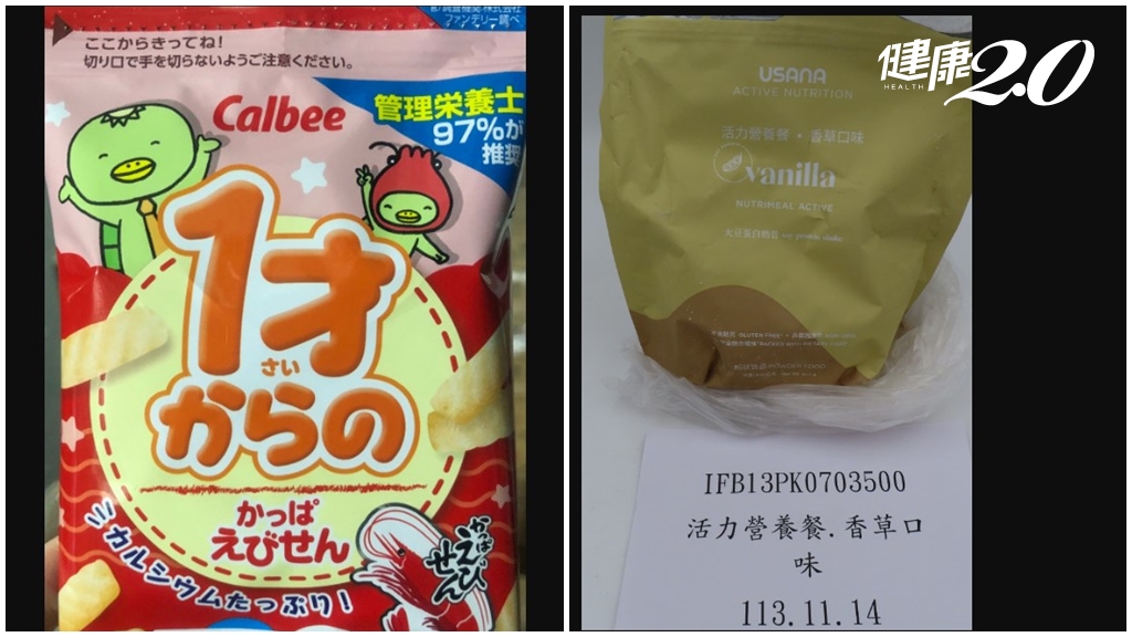 食品藥物管理署3/4公布最新一批邊境查驗不合格食品,日本知名零食品牌卡樂比(Calbee)旗下的幼兒蝦味條,被檢出重金屬鎘含量超標;美國直銷商優莎納(USANA)的大豆蛋白奶昔使用了我國未准用的甜味劑,都必須在邊境退運或銷毀。