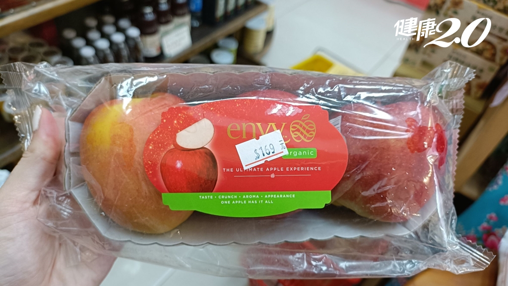從稽查人員採樣抽驗的產品包裝上還可以看到,這款有機蘋果包裝內有3顆,售價169元。