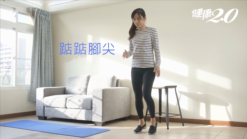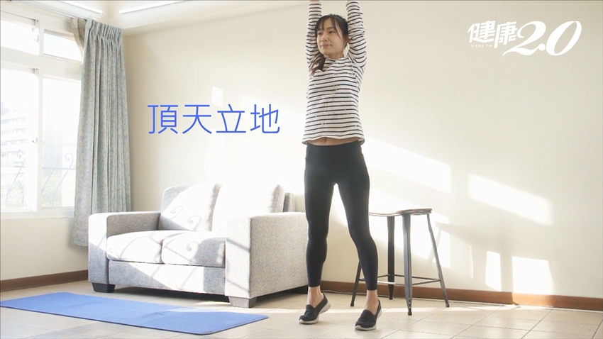 雙腳輪流抬起腳跟,像原地踏步的動作,幫助活動腳踝。此時你的身體已經差不多熱起來了,就可以開啟美好的一天!