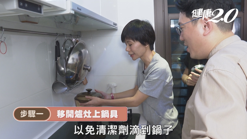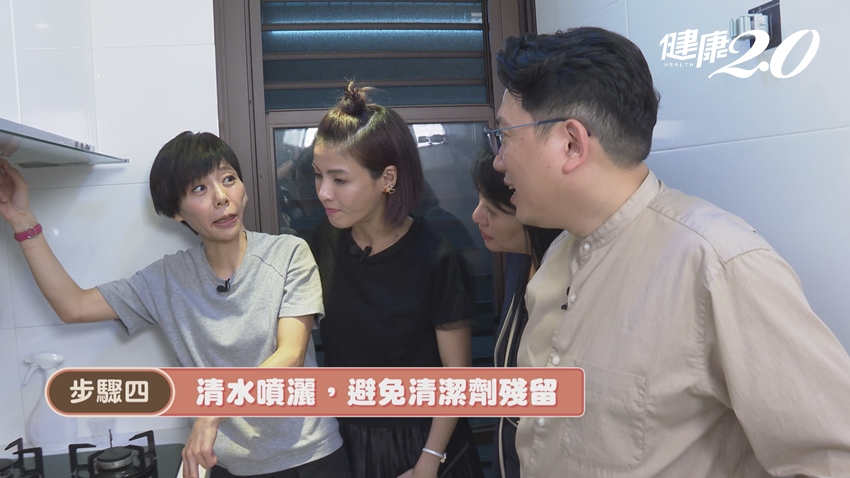 陳映如也提醒,噴完清潔劑以後,建議再用清水清潔一次,可以清除殘留的清潔劑及油垢,以免下一次煮菜時餘渣掉下來。