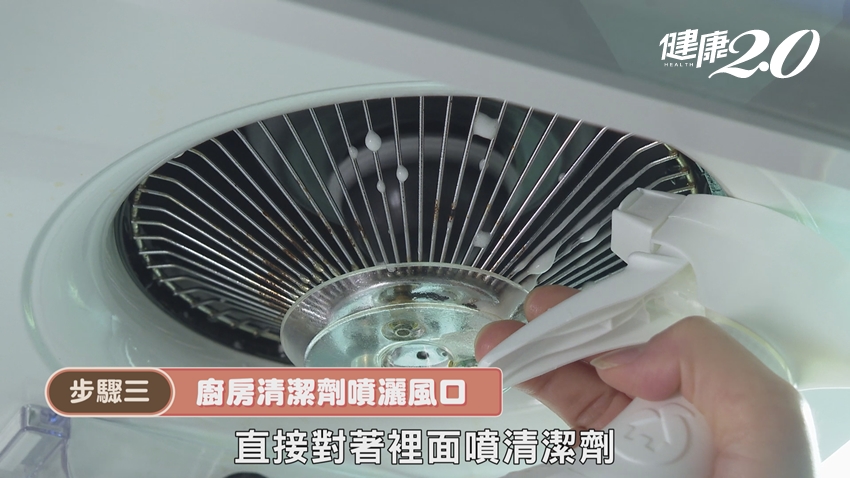 陳映如指出,抽油煙機經年累月的陳年油垢,容易卡在風扇中,更會影響抽油煙機的使用效果,想要清潔抽油煙機的陳年油垢,其實不用拆下來,只要依照以下步驟即可: