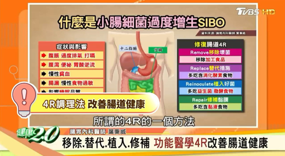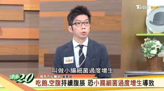 腸胃內科醫師葉秉威醫師在節目中提及,現在有一種新的疾病診斷為小腸細菌過度增生(SIBO),聽起來陌生的名詞,但卻是許多人長期腸道脹氣、不適的元兇!