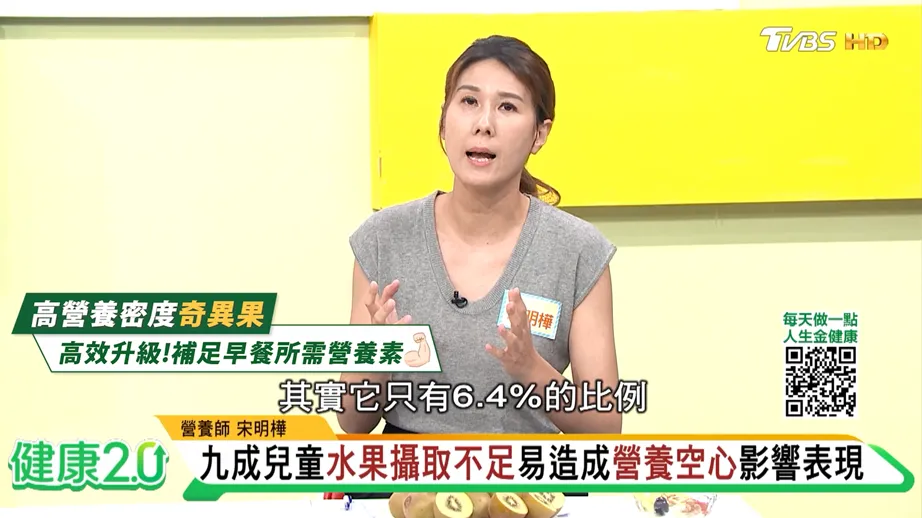 根據國健署國民營養健康調查,國人每日水果攝取量遠低於建議標準,尤其是7到12歲的小學生中,只有6.4%的人每天吃到兩份水果,換句話說,有超過9成的孩子早餐水果攝取量不足。