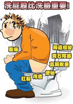 你經常占著茅坑卻拉不出屎嗎?現代人便祕的比例,真的是愈來愈多,根據統計每4個成人有1個便祕,小孩子更嚴重,每3個有1個便祕,便祕除了引起肛裂、痔瘡,讓你疼痛難消之外,還有直腸脫垂、糞屎阻塞、腹痛,最嚴重的就是腸道癌變,大家都知道,現在得大腸癌的人愈來愈多了,是我們成長最快的癌症之一,尤其年齡不斷的降低,根據統計青壯年得大腸癌的,10年增加了3成,怎麼樣減少大腸癌?怎麼樣減少便祕和痔瘡?節目請到4位專家跟大家一起來討論,而且有醫生說:「洗屁股比洗臉還要重要。」這是為什麼?我們一起來討論。