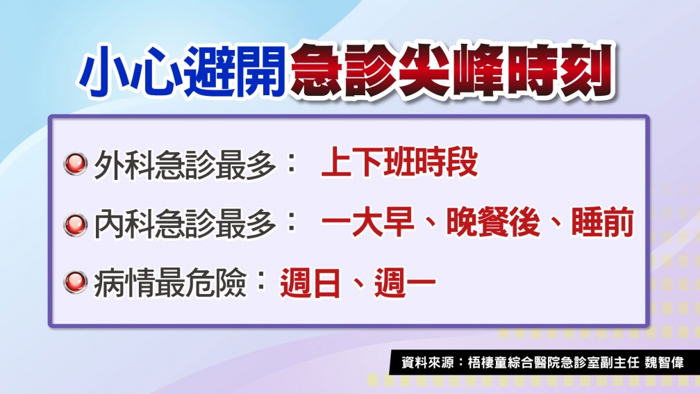 ●小心避開急診尖峰時刻