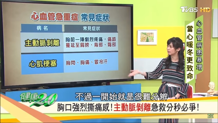 振興醫院急診重症醫學部醫師田知學指出,心肌梗塞的確有黃金急救時間,只要熟記一些症狀,如胸悶、胸痛等,以及善用急救器材AED,的確是可以救回來;但主動脈剝離是血管破裂,一旦發生,往往就是人命一條,愈快治療愈好。