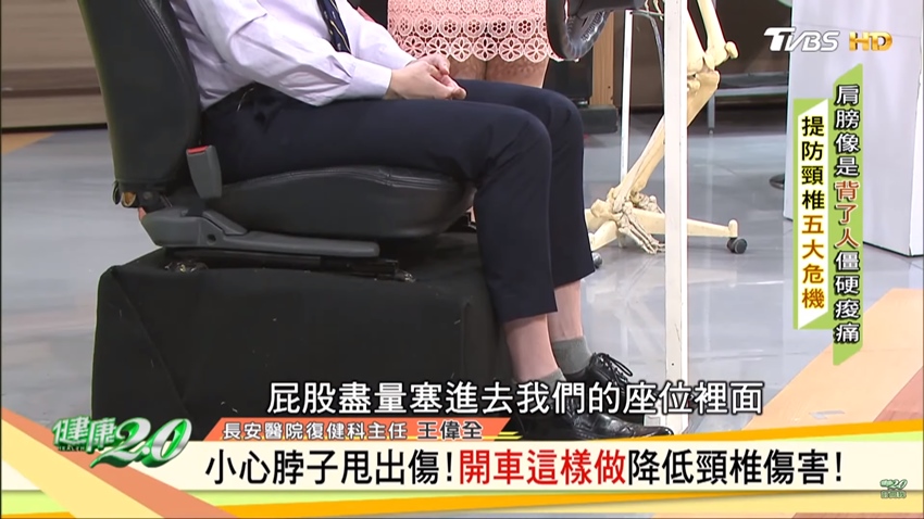 長安醫院復健科主任王偉全指出,預防甩鞭症候群,開車時的姿勢最重要。他的建議如下: