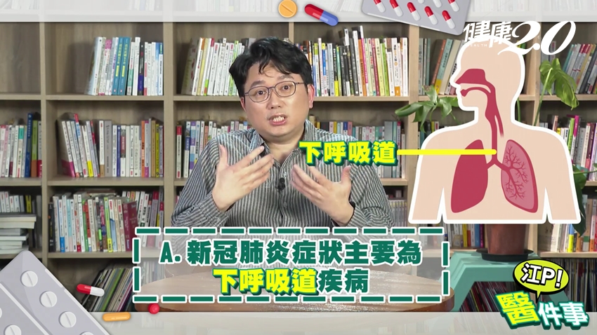 江坤俊說明,流感會引起全身痠痛、高燒,但感冒不會。流感為以上呼吸道症狀為主,如流鼻水、咳嗽、喉嚨痛;而新冠肺炎主要為下呼吸道症狀,如咳嗽、呼吸急促,可能伴隨味覺、嗅覺異常。