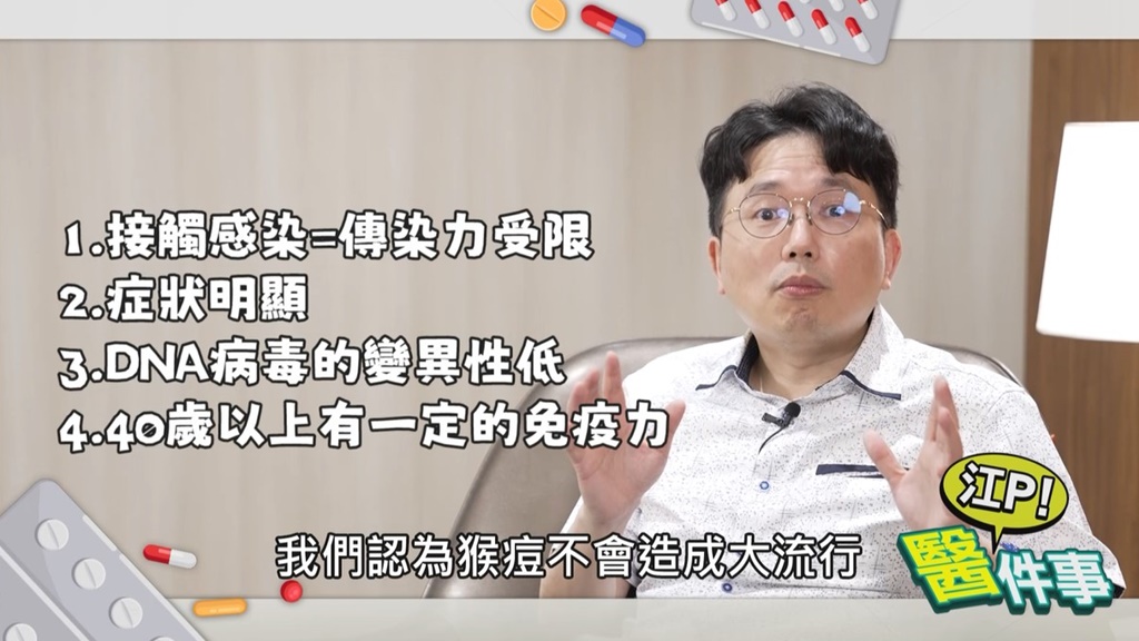 基於以上4個理由,江P表示,猴痘不至於造成另一波疫情大流行。