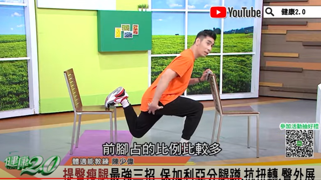 臉部醫美整形很簡單,但是臀部下垂,還是讓人一眼看出老化。陳少偉教一個號稱「世界上最強提臀訓練」的保加利亞分腿蹲。一般人做提臀運動可能會做「弓箭步」,但是平面的弓箭步,力量分配在兩腿是5:5。保加利亞分腿蹲則是把後腳放在一個高點,往下蹲時,力量分配變成8:2,也就是前腳8分力、後腳2分力,如此一來,每次下蹲,前腳的臀部訓練增加1倍,所以敢說是世界最強提臀。
