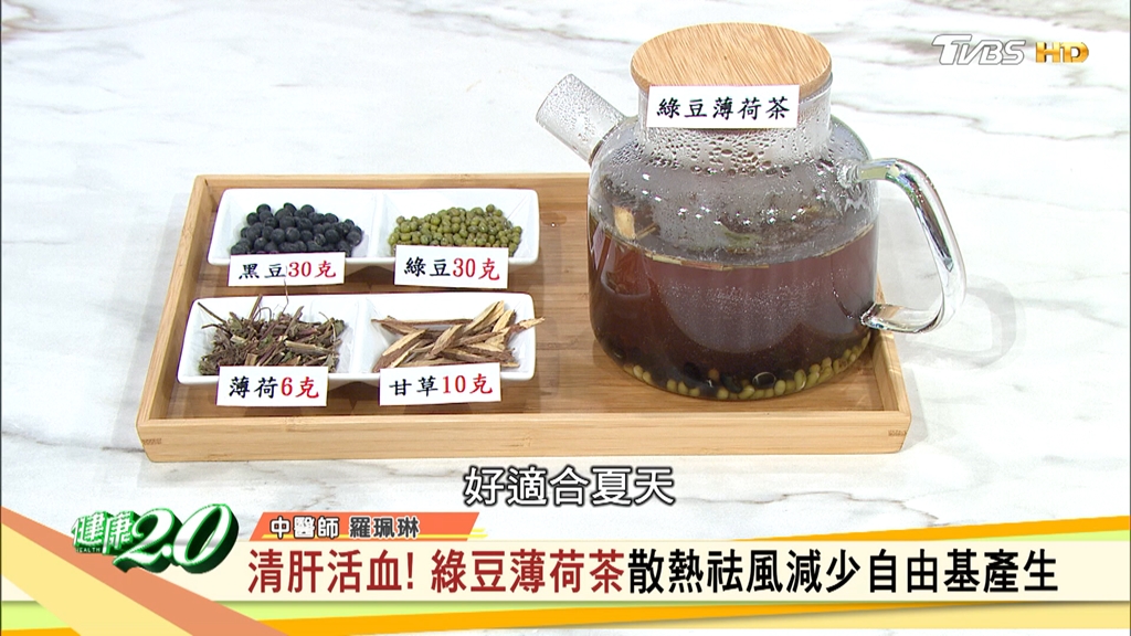 羅珮琳也推薦,可以幫助排毒的「綠豆薄荷茶」,其中的綠豆是豆類中最擅解毒者,常用於食物中毒的解藥;而黑豆也可用來解毒,建議搭配甘草,可提升解毒的效果;薄荷則能宣肺氣,適合用於呼吸道排毒。