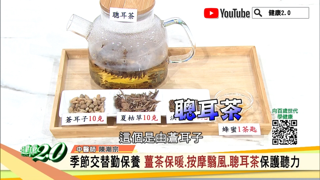 陳潮宗強調,中醫保養聽力,首重避免冷風直接吹到耳朵,以免影響耳部的血液循環,導致耳部健康問題,提供2道茶飲預防聽力退化,有助改善耳部循環,保養聽毛細胞。