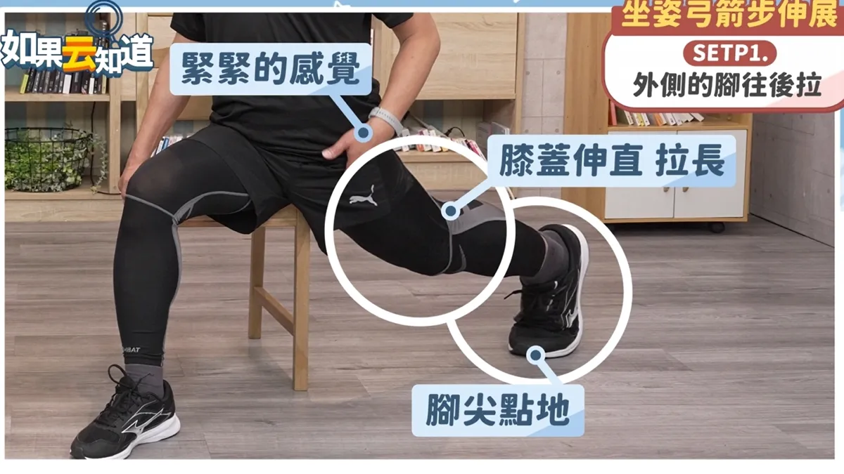 鄭雲龍還在節目中示範一套適合髖關節有點緊、狀況還不重的人適合做的動作,可以幫助伸展髖關節: