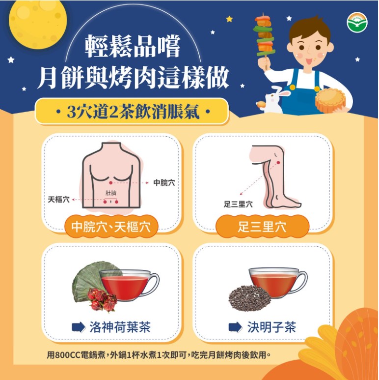 接近中秋節,開始聚餐吃烤肉和月餅,容易讓胃脹氣產生不適,吃什麼可以消脹氣?哪些穴位可以消脹氣?中醫教大家馬上解決腸胃脹氣的方法。